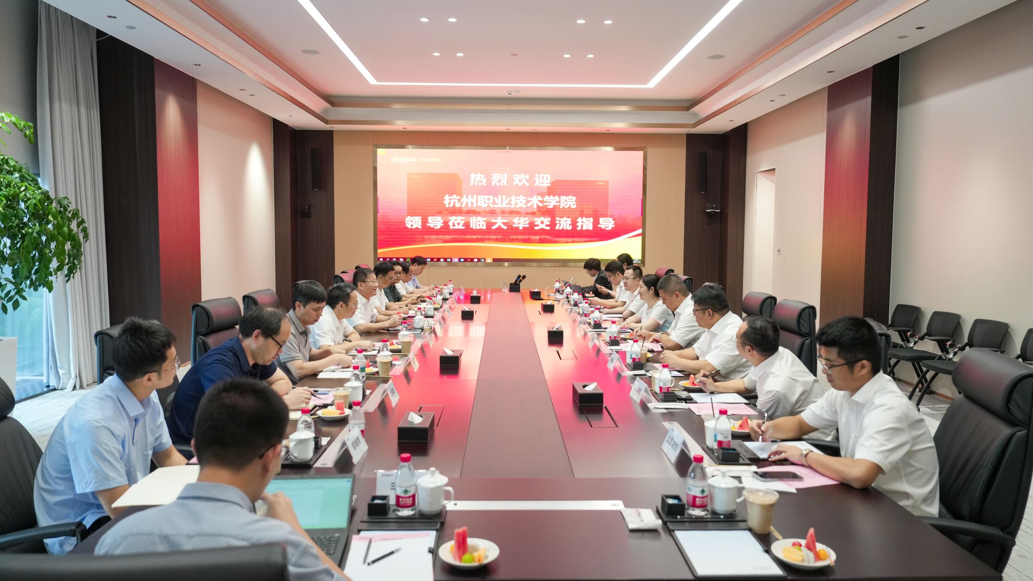 大华运营公司负责人结合具体案例,介绍了公司在产教融合领域的业务方案,以及AI大模型在助力智慧校园建设领域的实践和探索。他表示,期待能与杭职院共同搭建现代产业学院平台和创新载体,围绕培育一流人才和关键技术创新,打造校地企深度合作命运共同体。会上,双方就产业学院建设、职本教材开发、师资队伍培养等议题进行深入交流探讨。